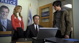 “Great Firewall” –The law firm of Lockhart, Gardner and Bond sues a social networking site on behalf of a Chinese dissident who posted an anonymous blog about democracy in China, and was jailed and tortured by the Chinese government when the site failed to protect his anonymity and turned over his IP address. Meanwhile, Eli (Alan Cumming, center) gets a tip from Zach (Graham Phillips, right) and Becca (Dreama Walker, left) that he hopes will drive Childs out of the race, and Will and Diane hope to wrestle the firm away from Derrick Bond once and for all, on THE GOOD WIFE, Tuesday, March 1 (10:00-11:00 PM, ET/PT) on the CBS Television Network. Photo: Best Possible Screen Grab/CBS ©2010 CBS Broadcasting Inc. All Rights Reserved.