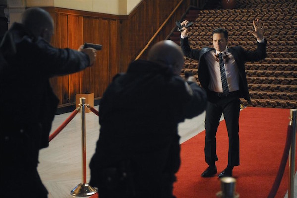 CASTLE – “At Close Range” – Detective Kevin Ryan is on the security detail of a charismatic congressman attending a charity event when shots suddenly ring out. Driven to apprehend the killer, Ryan must revisit the events that led up to the shooting, with the help of Castle and Beckett, on “Castle,” MONDAY, MARCH 23 (10:01-11:00 p.m., ET) on the ABC Television Network. (ABC/David Moir)