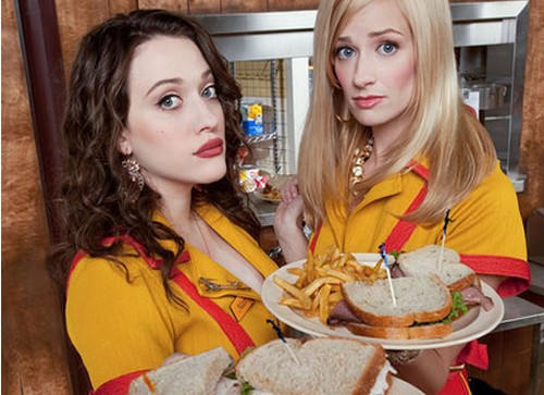 2 BROKE GIRLS. Due amiche, cameriere di una tavola calda, la faccendona Max (Kat Dennings) e la ragazza una volta ricca Caroline (Beth Behrs) decidono di impegnarsi per aprire un locale tutto loro: la prima crede nelle potenzialità di cameriera della seconda, mentre la seconda è certa che le capacità culinarie della prima possano fare la differenza. Nel cast figurano anche Jonathan Kite (il cuoco russo Oleg), Garrett Morris (il cassiere del locale Earl) e Matthew Moy (il proprietario del locale Han Lee).