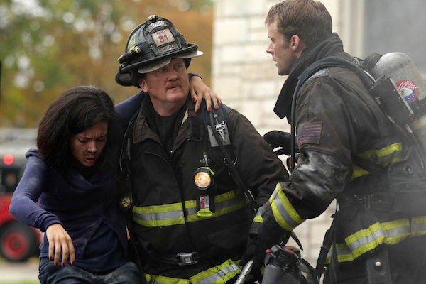 CHICAGO FIRE — “Chopper” Episode 308 — Pictured: (l-r) Christian Stolte as Mouch, Jesse Spencer as Matthew Casey — (Photo by: Elizabeth Morris/NBC)