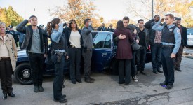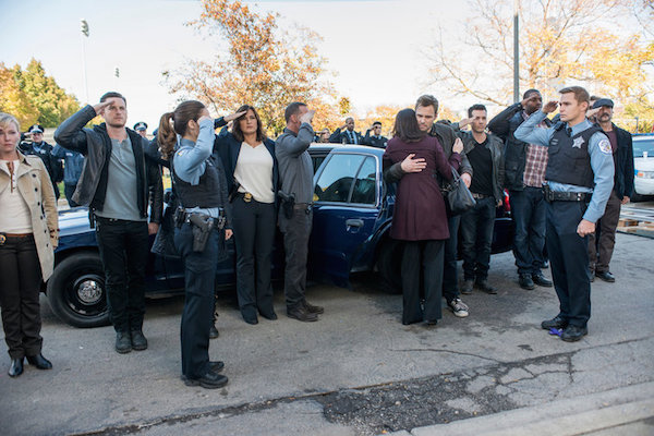 CHICAGO P.D. — Episode 209 “They’ll Have to Go Through Me” — Pictured: (l-r) Kelli Giddish as Amanda Rollins, Jesse Lee Soffer as Jay Halstead, Marina Squerciati as Kim Burgess, Mariska Hargitay as Olivia Benson, Jason Beghe as Hank Voight, Patrick John Flueger as Adam Ruzek, Jon Seda as Antonio Dawson, Laroyce Hawkins as Kevin Atwater, Brian Geraghty as Sean Roman, Elias Koteas as Alvin Olinsky — (Photo by: Matt Dinerstein/NBC)
