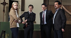 “What Happens At Home…” — FBI cadet Agent Ashley Seaver (Rachel Nichols, left) assists Reid (Matthew Gray Gubler, second from left), Hotchner (Thomas Gibson, second from right) and Rossi (Joe Mantegna, right) as the BAU searches inside a gated New Mexico community for a killer targeting women, on CRIMINAL MINDS, Wednesday, Dec. 8 (9:00-10:00 PM, ET/PT) on the CBS Television Network Photo: Sonja Flemming/CBS.
