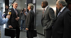 “The Time is Now” — Cooper (Forest Whitaker, center) is called to testify when a case involving a woman on death row petitions for a mistrial based on the testimony given by FBI director Fickler (Richard Schiff, right). Eric Roberts (left) guest stars as prosecuting attorney Andy Armus, on CRIMINAL MINDS: SUSPECT BEHAVIOR, May 4 (10:00-11:00 PM, ET/PT) on the CBS Television Network. Also pictured H. Richard Greene (far left) Photo: Sonja Flemming/CBS ©2010 CBS Broadcasting Inc. All Rights Reserved.