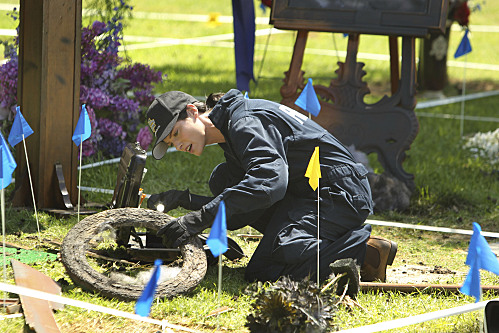 “Shock Waves” — Bomb-site expert Kacey Monahan (Sienna Guillory) works a crime scene at a graveyard on the eleventh season premiere of CSI: CRIME SCENE INVESTIGATION, Thursday, September 23 (9:00-10:00 PM, ET/PT) on the CBS Television Network. Photo: Monty Brinton/CBS