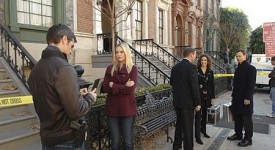 “Criminal Justice” — Det. Don Flack (Eddie Cahill) from left, interviews guest star Sophie Sinise on CSI: NY, scheduled to air Wednesday, Jan. 13 (10:00-11:00 PM, ET/PT) on the CBS Television Network. Guest star D.B. Sweeney, Det. Stella Bonasera (Malina Kanakaredes) and Det. Mac Taylor (Gary Sinise) seen in the background.