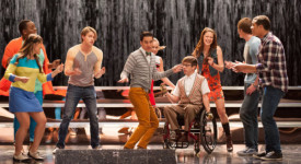 GLEE: The Glee club performs in the “Lights Out” episode of GLEE airing Thursday, April 25 (9:00-10:00 PM ET/PT) on FOX. ©2013 Fox Broadcasting Co. Pictured L-R: Alex Newell, Jenna Ushkowitz, Chord Overstreet, Darren Criss, Becca Tobin, Kevin McHale, Melissa Benoist, Blake Jenner and Jacob Artist. CR: Eddy Chen/FOX