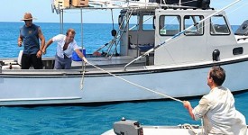 “Lana I Ka Moana” — McGarrett (Alex O’Loughlin, left) and Danny’s (Scott Caan, center) relaxing day at sea takes a deadly turn when their boat is hijacked by a man (Todd Stashwick) and they are left to die in the middle of the ocean, on HAWAII FIVE-0, Monday, Oct 8th (10:00-11:00 PM, ET/PT) on the CBS Television Network. Photo: Norman Shapiro/CBS ©2012 CBS Broadcasting, Inc. All Rights Reserved.