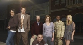 PERSONS UNKNOWN — Pictured: (l-r) Tina Holmes as Moira, Sean O’Bryan as Blackham, Alan Ruck as Charlie, Jason Wiles as Joe, Daisy Betts as Janet, Chadwick Boseman as Sergeant McNair, Kate Lang Johnson as Tori — Photo by: Michael Lavine/NBC