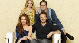 ROMANTICALLY CHALLENGED – ABC’s “Romantically Challenged” stars Kyle Bornheimer as Perry Gill, Kelly Stables as Lisa Thomas, Josh Lawson as Shawn Goldwater and Alyssa Milano as Rebecca Thomas. (ABC/BOB D’AMICO)