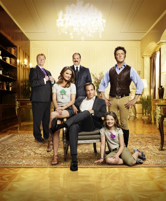 RUNNING WILDE: A lovable but immature playboy (Will Arnett, C) tries desperately to win (or buy) the heart of his childhood sweetheart (Keri Russell, second from L), the über-liberal humanitarian who got away in RUNNING WILDE, the new romantic comedy debuting Tuesday, Sept. 21 (9:30-10:00 PM ET/PT) on FOX. Also pictured: Robert Michael Morris (L), Mel Rodriguez (third from L), Stephania Owen (second from R), and Peter Serafinowicz (R). ©2010 Fox Broadcasting Co. Cr: FOX