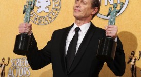 Actor Steve Buscemi holds the award for best actor in a drama series for his role in ‘Boardwalk Empire’ in the press room at the 18th Annual Screen Actors Guild Awards at the Shrine Auditorium in Los Angeles, California on January 29, 2012. AFP PHOTO / FREDERIC J. BROWN (Photo credit should read FREDERIC J. BROWN/AFP/Getty Images)