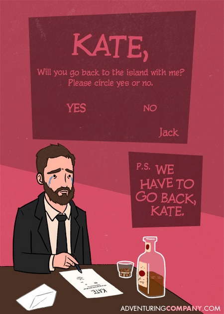 In occasione di San Valentino l’artista Lee Bretschneider ha proposto sul suo sito una serie di cartoline veramente originali e simpatiche che hanno per protagonisti i personaggi di Lost.