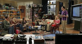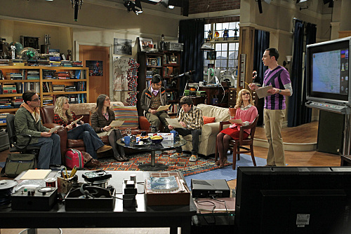 “The Love Car Displacement” — Tensions run high when everyone is staying in the same hotel for a science event and Bernadette runs into her ex-boyfriend, on THE BIG BANG THEORY, Thursday, January 20 (8:00-8:31 PM, ET/PT) on the CBS Television Network. Pictured (left to right): Johnny Galecki, Kaley Cuoco, Mayim Bialik, Kunal Nayyar, Simon Helberg, Melissa Rauch, Jim Parsons.