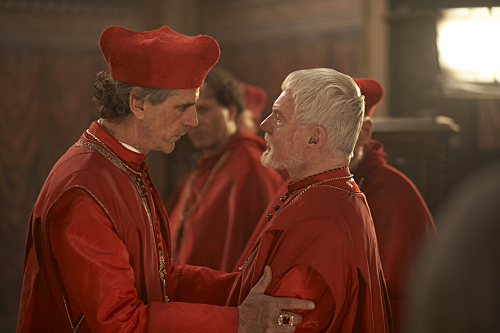 Jeremy Irons as Rodrigo Borgia and Derek Jacobi as Cardinal Orsini in The Borgias (Episode 1) – Photo: Jonathan Hession/SHOWTIME- Photo ID: TheBorgias_101_1039