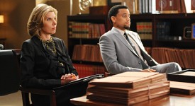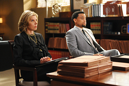 “Breaking Fast”–A multi-million dollar malicious prosecution suit that leads to an explosive confrontation between Diane (Christine Baranski, left) and Derrick (Michael Ealy, right), and the Stateâs Attorneyâs office. Meanwhile, Aliciaâs brother, Owen, visits after his questionable remarks about Peter go viral online and makes Eli apoplectic, on THE GOOD WIFE, Tuesday, Oct. 12 (10:00-11:00 PT, ET/PT) on the CBS Television Network. Photo: David M. Russell/CBS ©2010 CBS Broadcasting Inc. All Rights Reserved.