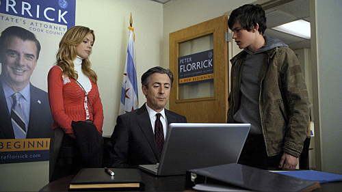 “Great Firewall” –The law firm of Lockhart, Gardner and Bond sues a social networking site on behalf of a Chinese dissident who posted an anonymous blog about democracy in China, and was jailed and tortured by the Chinese government when the site failed to protect his anonymity and turned over his IP address. Meanwhile, Eli (Alan Cumming, center) gets a tip from Zach (Graham Phillips, right) and Becca (Dreama Walker, left) that he hopes will drive Childs out of the race, and Will and Diane hope to wrestle the firm away from Derrick Bond once and for all, on THE GOOD WIFE, Tuesday, March 1 (10:00-11:00 PM, ET/PT) on the CBS Television Network. Photo: Best Possible Screen Grab/CBS ©2010 CBS Broadcasting Inc. All Rights Reserved.