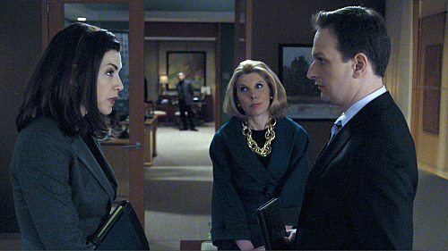 “Great Firewall” — Alicia (Julianna Margulies, left), Diane (Christine Baranski, center) and Will (Josh Charles, right) represent a Chinese dissident in a suit against a social networking site that posted an anonymous blog about democracy in China. Meanwhile, Eli gets a tip that he hopes will drive Childs out of the race, and Will and Diane hope to wrestle the firm away from Derrick Bond once and for all, on THE GOOD WIFE, Tuesday, March 1 (10:00-11:00 PM, ET/PT) on the CBS Television Network. Photo: Best Possible Screen Grab/CBS ©2010 CBS Broadcasting Inc. All Rights Reserved.