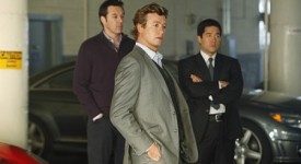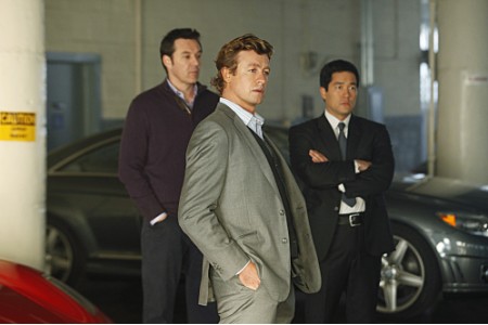 “Redline” — Walter Mashburn (guest star Currie Graham, back left) shows Jane (Simon Baker, center) and Cho (Tim Kang, back right) a luxury car during a CBI investigation into the murder of a luxury car saleswoman, on THE MENTALIST, Thursday, February 4 (10:00-11:00 PM, ET/PT) on the CBS Television Network.