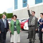 Nel decimo episodio della sesta stagione di The Office, dal titolo Shereholder Meeting, Michael (vincitore del Golden Globe Steve Carell), si emoziona quando è invitato da David Wallace (Andy Buckley) alla riunione degli azionisti Dunder Mifflin a New York. L’uomo porta con sè, Andy (Ed Helms), Dwight (Rainn Wilson) e Oscar (Oscar Nunez).