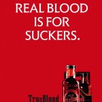 La bevanda sullo schermo è in due versioni, che fanno naturalmente riferimento ai due tipi principali di sangue umano, bottiglia rigorosamente rossa e nella versione replica al posto del plasma sintetico, succo d’arancia e soda. Visto l’evento che farà la felicità dei collezionisti e dei cultori della serie, dopo il salto vi proponiamo la campagna di viral-marketing che ha invaso gli States alla viglia del debutto della serie, con manifesti pubblicitari e una campagna a tappeto che puntava proprio sulla bevanda, e in più quattro spot, tre americani e uno studiato per pubblicizare la bevanda ai vampiri francesi.