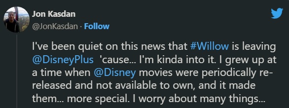 Kasdan, che ha sviluppato la serie Willow, sta ora rompendo il silenzio sul fatto che è stato tolto dalla piattaforma di streaming per cui è stato creato. Lo showrunner offre una prospettiva interessante e ottimista nei suoi tweet, elaborando il modo in cui la rimozione da Disney+ lo riporta ai giorni in cui i film non erano prontamente disponibili e in che modo ciò rende quei progetti più speciali. Kasdan fa sapere che comunque le possibilità di apparire su altri canali oltre a quello Disney sono una reale possibilità: